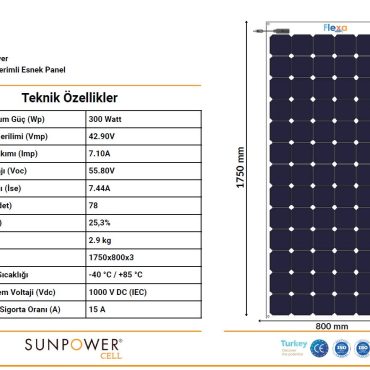300 Watt Sunpower Esnek Güneş Paneli 1750×800 mm